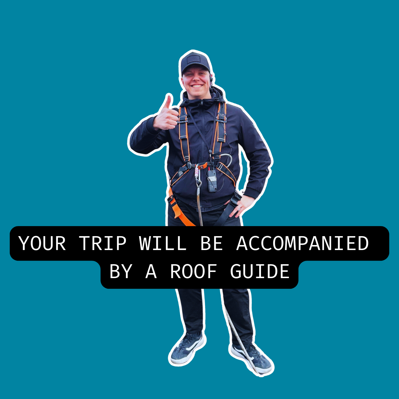 The Roof Walk takes place on walkways without railings. Each participant wears a safety harness that is attached to a safety cable for the entire route.
