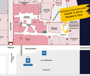 The Roof Walk route is located in the city centre of Tampere, in the Finlayson area, in the Media 54 building.